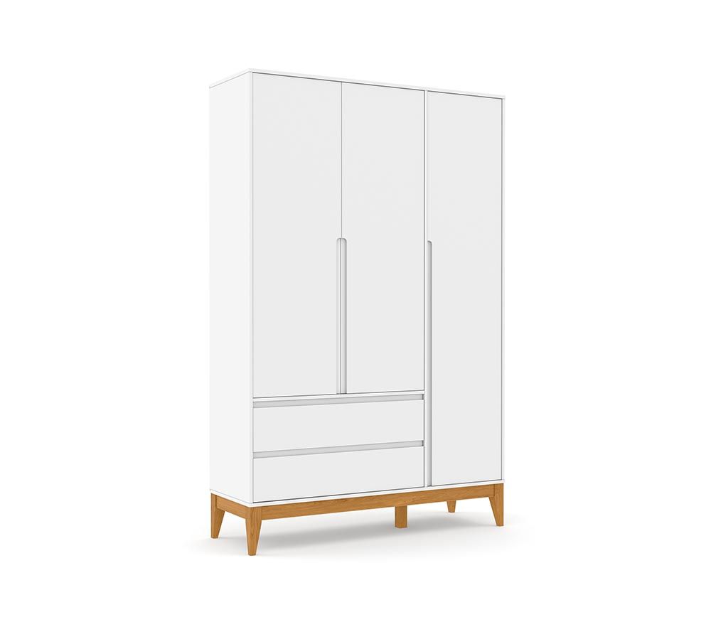 O Armário Nature Clean 3 Portas oferece uma combinação perfeita de funcionalidade e estilo. Fabricado em 100% MDF, possui um design elegante com puxadores e cabideiro em madeira, que destacam a estética natural do móvel. Conta com corrediças telescópicas, garantindo suavidade na abertura das gavetas, e um excelente espaço interno para organização. A base estrutural em madeira nas cores Natural e Eco Wood adiciona charme e durabilidade, tornando este armário uma escolha prática e sofisticada para qualquer ambiente.