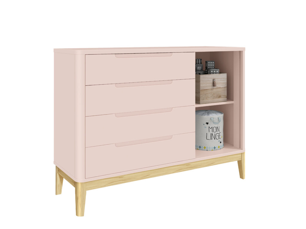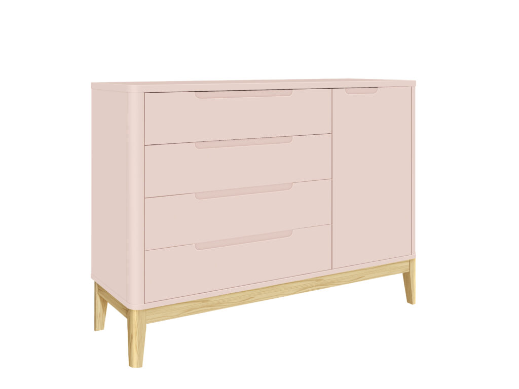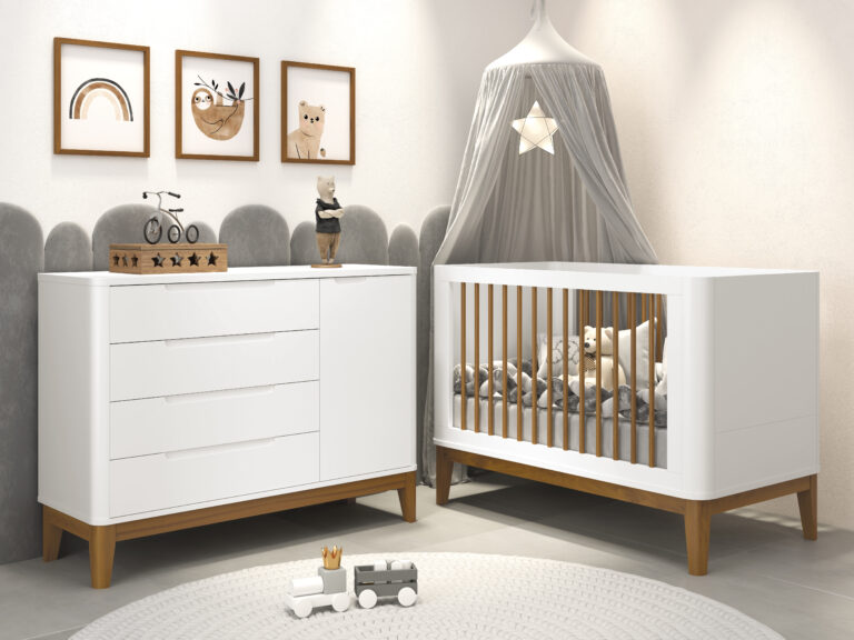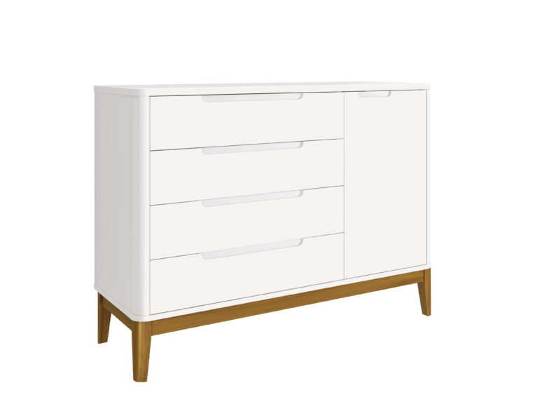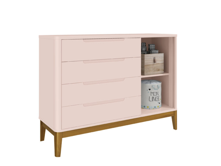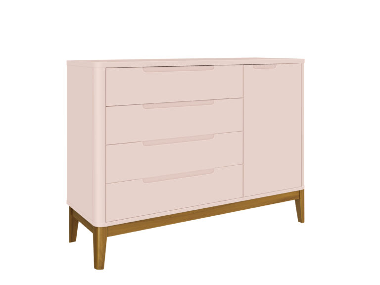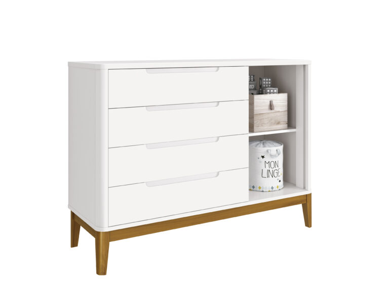 A Cômoda Sapateira Boom 1 Porta e 4 Gavetas é uma peça prática e moderna para organizar o quarto. Ela possui tampo robusto de 25mm, corrediças telescópicas para maior facilidade ao abrir e fechar as gavetas, e puxadores embutidos, garantindo um visual elegante e seguro. O sistema anti-tombamento reforça a segurança, ideal para ambientes infantis. Conta ainda com um divisor de gavetas e um design sem parafusos aparentes, proporcionando um acabamento limpo e durável.