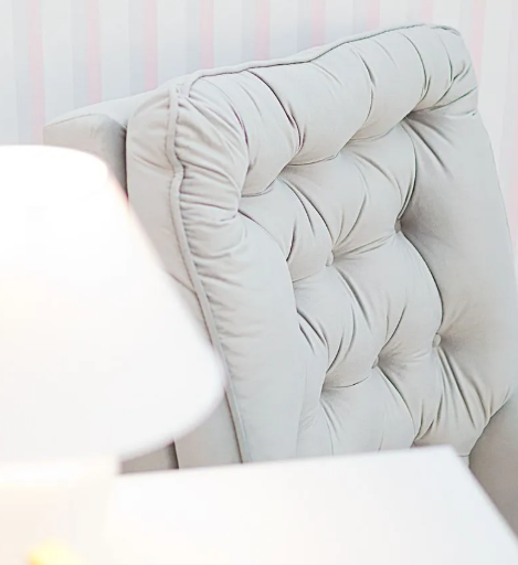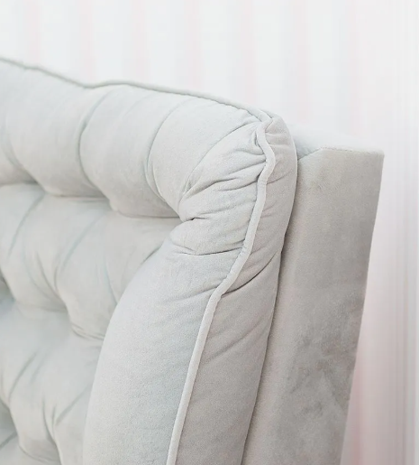 - Encosto em fibras 100% silicone e botões de metal revestidos com tecido de alta qualidade;