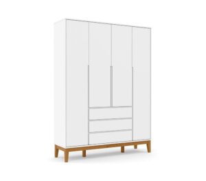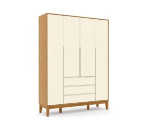 O Armário 04 Portas Zupy é uma peça funcional e moderna, feita em 100% MDF, garantindo durabilidade e resistência. Possui corrediças telescópicas e puxadores de madeira, que conferem praticidade e estilo. Sua base estrutural em madeira proporciona firmeza, enquanto as portas com detalhe em baixo relevo oferecem um toque de sofisticação ao design. Com amplas dimensões, é ideal para organizar roupas e acessórios de maneira eficiente e elegante.