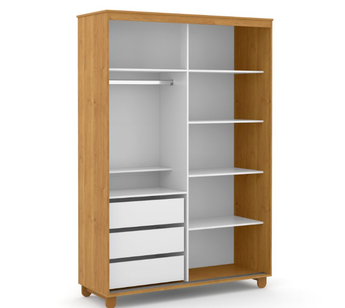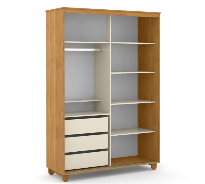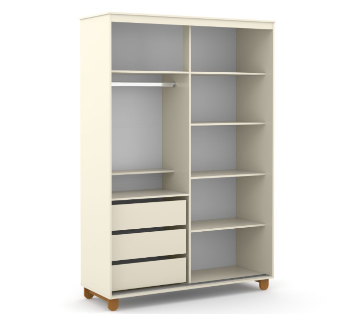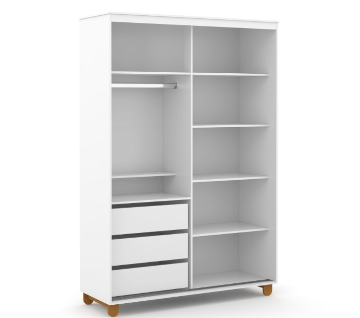 * Excelente espaço, com 3 gavetas internas e opção de modificar o espaço interno, entre prateleiras e cabideiros