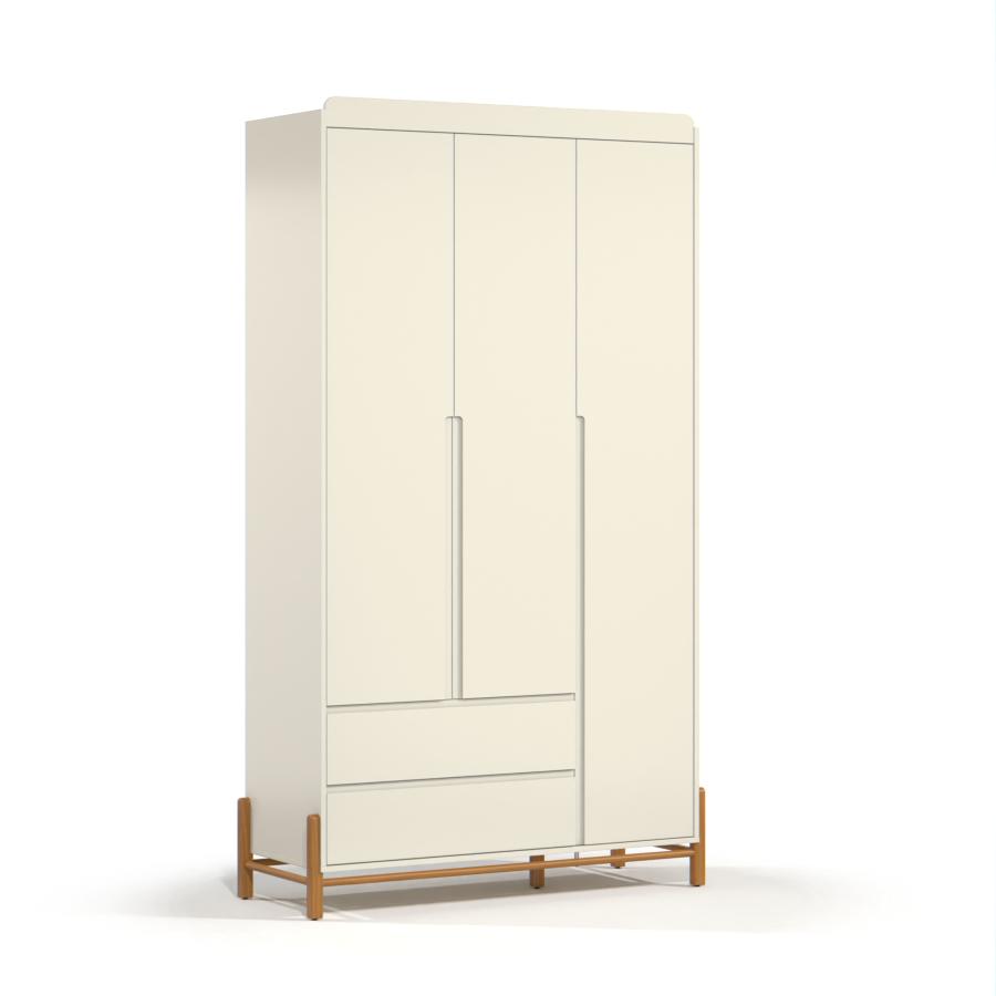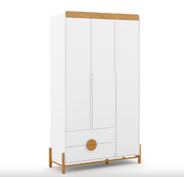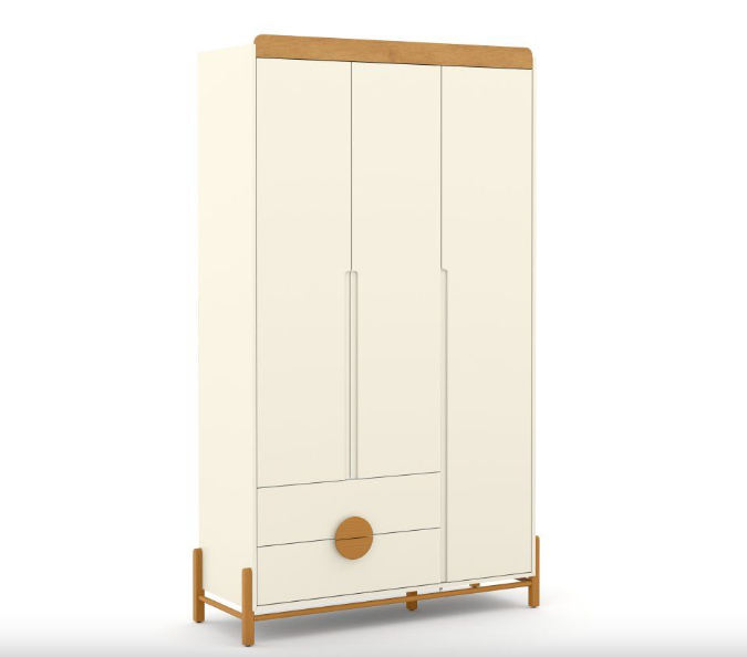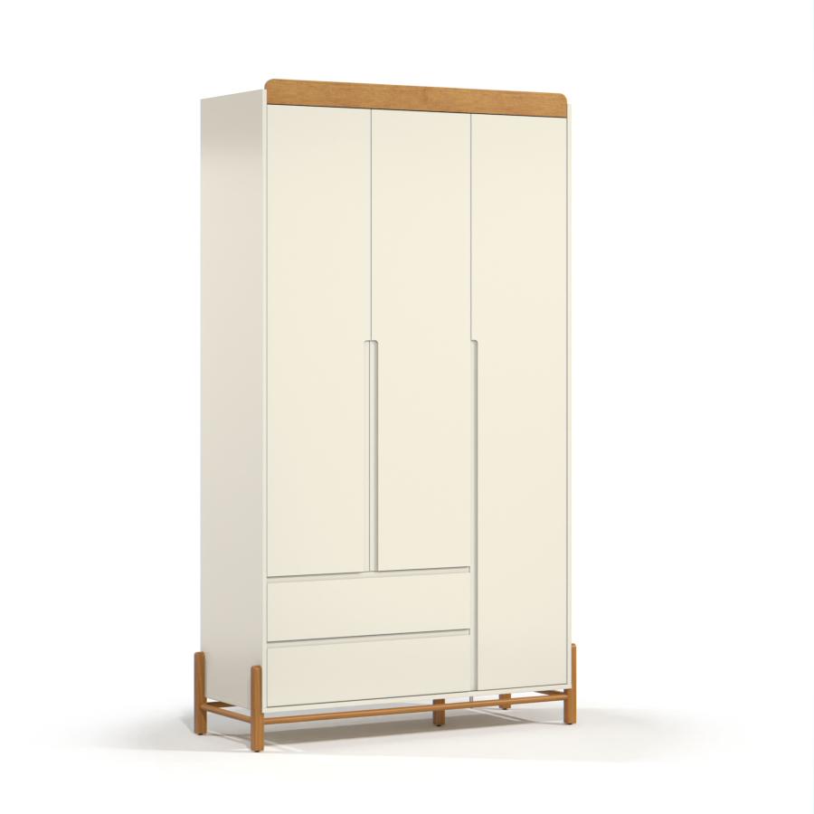 O Roupeiro 3 Portas Tess é um móvel funcional e estiloso, ideal para organizar o quarto com elegância. Fabricado 100% em MDF, garante durabilidade e resistência. Os pés em madeira e os puxadores usinados nas portas, juntamente com os puxadores de madeira nas gavetas, oferecem um toque de sofisticação e praticidade. Com 2 gavetas e um amplo cabideiro em alumínio, o roupeiro oferece excelente espaço interno para armazenar roupas e acessórios. Suas dimensões são 1220 mm de largura, 2140 mm de altura e 480 mm de profundidade, proporcionando um ótimo aproveitamento de espaço.