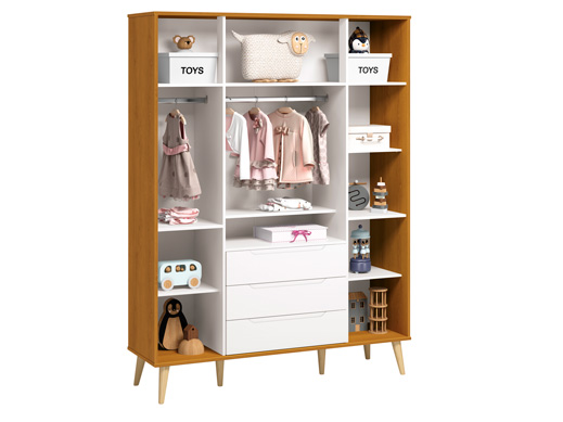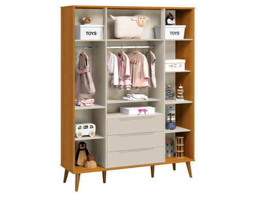 O Roupeiro ELFE une praticidade e elegância com um design contemporâneo e funcional. Em acabamento fosco, ele oferece amplo espaço interno com cabideiros metálicos e gavetas que deslizam suavemente em corrediças telescópicas, facilitando o acesso e organização das roupas. Com puxadores embutidos e estrutura sem parafusos expostos, o roupeiro é ideal para quem busca um toque de sofisticação no ambiente. Os pés são vendidos separadamente, permitindo uma personalização que complementa o estilo do espaço.