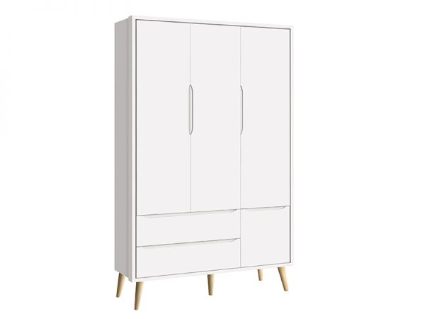 O Roupeiro Retrô é a combinação perfeita de estilo vintage e funcionalidade moderna. Com três portas, duas gavetas e divisões internas bem planejadas, ele oferece organização e praticidade para o dia a dia. Os pés pontiagudos em madeira e os puxadores embutidos garantem um design sofisticado, enquanto o acabamento atóxico em UV reforça a segurança. Uma escolha elegante e eficiente para transformar seu espaço.